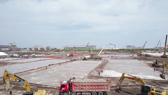援建工作组紧盯阻碍施工进展的关键难题解决,针对上海临港施工现场临近湖边、土质极为湿松软、排水较为困难的问题,结合现场地形地质具体分析解决,订购了一批专用排水管道模具,在道路浇筑前埋设固定好,保障积水可以及时排出。强化内外沟通协调,积极保持同上海市政府及交通部门的沟通协调,提前为车辆及人员办理疫情期间出入证,确保施工用材可以及时顺畅送抵项目,并保持同上海宝冶等参建单位的沟通,保障材料应急供给。不断加大施工力量投入,目前已进驻现场人员434名,其中管理人员38名,作业人员396名,进场挖机、汽车吊等施工机械以及长板车、货车等运输车辆近60台,极大支撑了现场大工作面的开展。