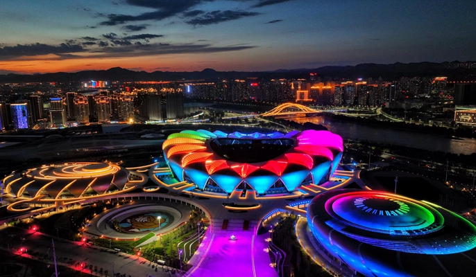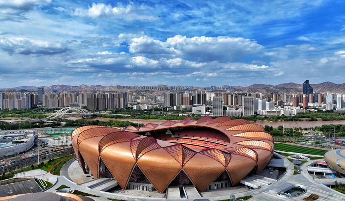 兰州奥体中心以“舞动于丝绸之路上的花朵”为设计理念,由玫瑰体育场、郁金香综合馆、百合游泳馆、荷花网球馆、兰花运动员公寓及室外配套运动场地组成,位于兰州市七里河区,总用地51.6万平方米,总建筑面积46.4万平方米,总体建设规模位居全国前列。项目于2019年10月21日正式动工,2022年4月28日交付使用,总工期920天,较常规建设速度快了四分之一以上。中国十七冶集团在兰州奥体中心建造过程中,以“智慧建造”打造“智慧场馆”,攻克了黄河之滨复杂地质条件桩机施工、体育场罩棚异形悬挑结构及双向扭曲钢桁架安装、综合馆90米世界最小矢跨比弦支穹顶结构安装难题,在国内创造了由一家单位独立承担奥体场馆群建设的新纪录,以及国内大型体育场馆群建设速度最快纪录。