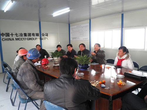 113下午,安徽省国资委企业分配处副处长凌萍、省总工会调研员余学华及市相关部门负责人一行来市政工程技术公司承建的工商银行与市教育局合建大楼工程检查,重点检查项目部农民工劳动合同的签订、农民工工资的支付及生活情况。