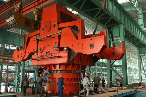 710上午958分,由冶金工程技术公司机装四处承担的马钢电炉钢包回转台顺利安装到位。