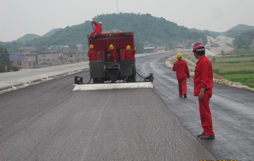 湖北大广南高速公路改性沥青稀浆封层试铺一次成功