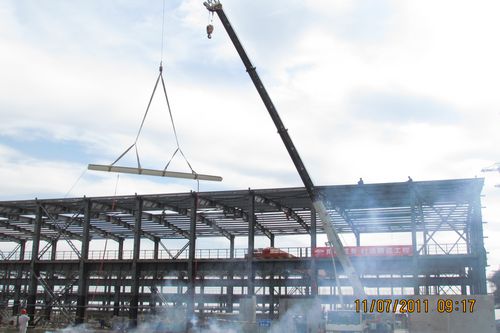 7月11日上午,由甘肃分公司承建的甘肃东兴铝业有限公司酒嘉风电基地高载能特色铝合金节能技术改造项目彩钢板制安工程首批彩钢板顺利吊装。 该工程包括电解铝车间A-B跨墙面、屋面彩钢板、采光带(含一、二号通廊)的制作与安装,厂房总长1250m,宽33m,高18m。工程中标后,酒钢工程项目部立即行动,精心组织,积极做好劳动力、工机具配置以及现场施工大临建设,确保了工程如期向前推进,获得到了业主和监理的一致好评。