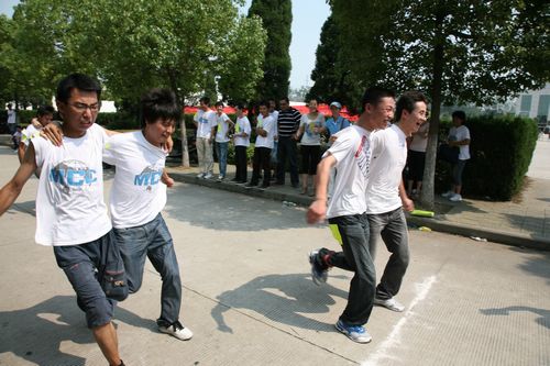 ——“两人三足”、拔河比赛,团结与默契无处不在。看似简单的游戏却蕴藏着不平凡的寓意,拔河考验的是团队配合和团结一致;“两人三足”游戏使大家明白了团结、默契的重要性,小小的一步让人体会到什么是一步之差,什么是略胜一筹。激烈而有趣的比赛激发起新员工们争做优秀、勇往直前的斗志,以胸前的“MCC”为自豪,立志今后干出一番事业。