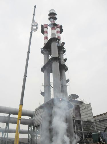 梅钢炼钢公辅工程一次除尘放散塔烟囱顺利吊装