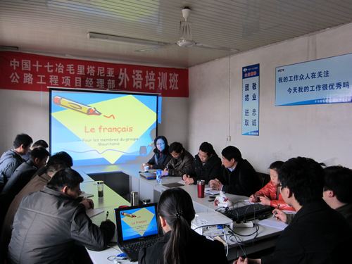 培训由项目专业翻译进行面授,并将根据情况进行测试。此次培训旨在提高项目管理人员的外语水平,初步掌握法语、英语的发音规则以及日常用语,进一步提高项目管理人员的基本素质,便于与外方人员进行沟通