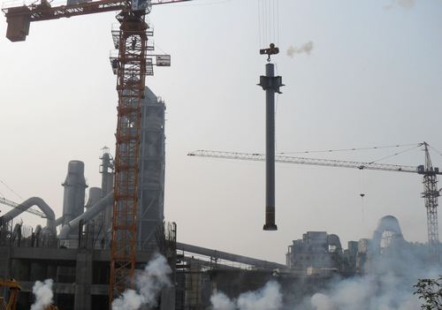 312,十七冶水泥工程技术公司承建的池州海螺三期2×5000t/d熟料生产线机电安装工程,其关键子项窑尾塔架顺利实现第一吊。