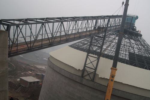12月26日,由水泥工程技术公司承建的东方希望重庆水泥熟料生产线二期工程D线熟料库斜拉链钢结构顺利吊装成功。至此,整条生产线结构施工全部完成。 该斜拉链钢结构设计为三支点两跨的大跨度钢结构廊道,其最大跨度为40m,结构单跨最重达38t。斜拉链钢廊道是水泥熟料生产线工程中一个重要的节点和难点,项目部编制专项施工方案,合理安排,采取整跨制作、整体吊装的施工方法,确保了顺利吊装成功,向业主交了一份满意的答卷,得到业主和监理等单位的认可。
