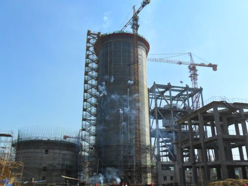 515上午848分,由水泥工程技术公司承建的池州海螺三期工程7线生料均化库顺利滑模到顶。