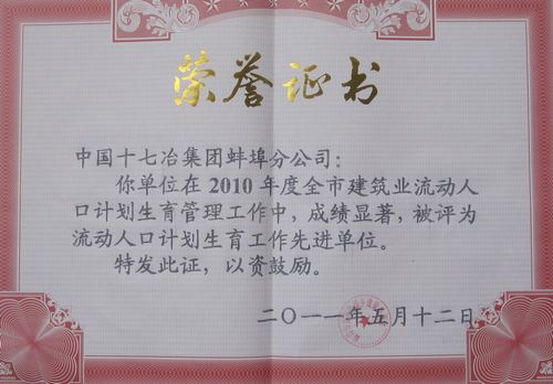 519,在蚌埠市住建委组织召开的全市建筑业党建暨流动人口计划生育工作会议上,蚌埠地区项目党支部赢得了蚌埠市建管局的高度赞扬,蚌埠分公司也同时被评为“流动人口计生工作先进单位”。