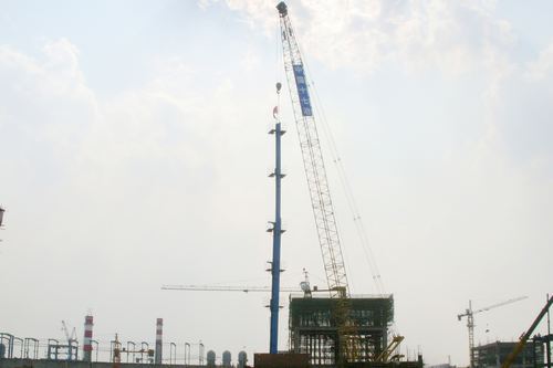 531,由山东分公司承建的泰钢烧结工程环冷厂房钢柱顺利开始吊装