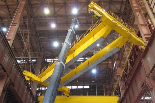 整个吊装过程仅仅用了8个小时,就完成了“井子梁”、副小车、主小车等主要设备的吊装。在整个行车吊装过程中施工与生产同步进行,再加上厂房内各种介质管道的影响,为行车的吊装带来了很大困难。为确保后续行车的顺利吊装,自从主梁吊装完成之后,项目部及机一处再次对现场实际情况进行实测实量,利用电脑不断模拟吊装过程中可能出现的问题,对吊车站位、回转半径、提升高度、吊臂是否卡杆进行了精确的计算,确保了吊装的顺利进行。
