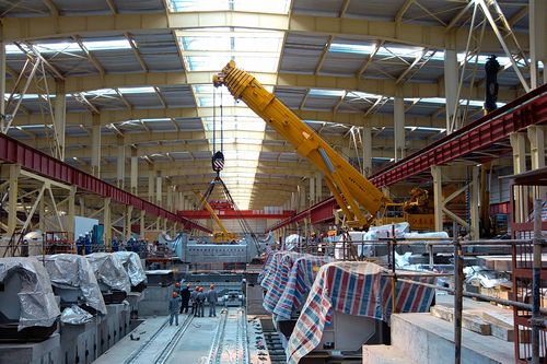 项目部参建员工通过前期的精心准备,克服了大型设备安装空间窄、吊机回转半径小、吊装机械移动困难等多种不利因素,一次圆满地完成了两台由德国西马克公司引进的进口设备吊装定位工作,为后续施工顺利开展打下了坚实基础。