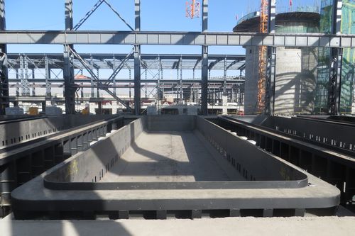 该工程为甘肃东兴铝业酒嘉风电基地高载能特色铝合金节能技术改造项目,主体车间总长度为1267.2、跨度32,厂房分4个工作区,其中一区厂房长300余米,设计安装电解槽42台,电解槽槽壳的组对安装是该项目的关键节点。