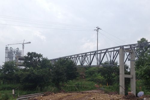 73凌晨,由十七冶水泥工程技术公司承建的梁平海螺4800t/d熟料线建筑工程B标矿山廊道最后两跨钢桁架顺利合拢,实现全线贯通。