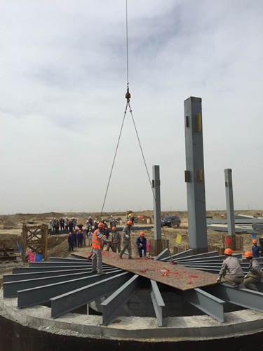 该电石炉直径11.06米、炉体质量97吨、炉体高5.6米。项目部积极践行“24小时工作法”,发扬“高效严谨,精细务实”的企业作风,以“一天也不耽误、一天也不懈怠”的工作状态,在确保安全、质量、文明施工的前提下,落实安全措施、区域化管理、责任到人,细化网络总节点、精细组织、科学施工,全力推进工程进度。该电石炉炉底板吊装成功,拉开了新疆胜沃电石炉工程设备安装大干的序幕。