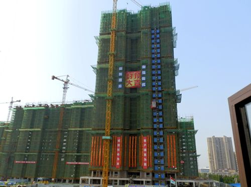 安粮城市广场一标段工程项目共计9栋商品住宅楼,总建筑面积191391.09平方米。其中5#和6#两栋楼为地上32层,建筑高度95.4米,总面积31046.38平方米。两楼于2014年5月26日开工以来,项目部发扬了“一天也不耽误、一天也不懈怠”的中冶精神,积极践行“24小时工作法”,制定全面系统的网络工作计划,科学配置施工资源,坚持每周一次工程例会,实行周计划保月计划、月计划保年计划和总工期的方法,并组织开展劳动竞赛,使各项工作稳步推进,安全、质量和文明施工管控有序,顺利实现结构封顶。目前,其它7栋高层也将逐步陆续进入封顶阶段。