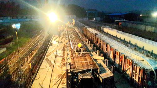 为顺利按期完成梁板预制任务,项目部精心组织,超前谋划,在梁板生产过程中不断优化工艺流程、资源配置,合理安排作业时间;强化现场监督管控,确保从材料的进场验收、混凝土的配合比、浇筑、振捣,到箱梁的喷淋养护、成品梁保护等每一道工序符合标准;精益求精,力求预制梁板外观平整密实、线条顺直、棱角分明、颜色均匀。科学的管理措施保证了工程的质量和进度,赢得了业主和监理的一致好评。