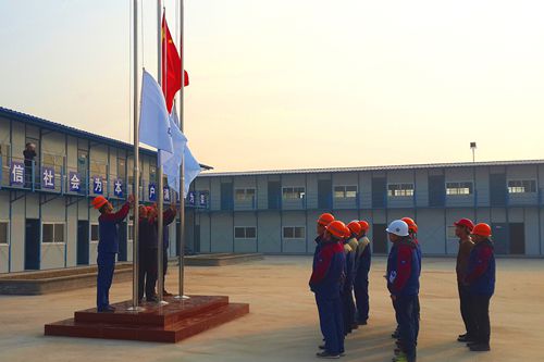 伴随着雄壮激越的国歌,鲜艳的五星红旗迎着清晨的阳光冉冉升起,全体职工整装列队,个个昂首挺胸,精神抖擞,向国旗行注目礼。此次升国旗仪式有力地凝聚了人心,鼓舞了士气,增强了项目部全体管理人员的集体荣誉感。
