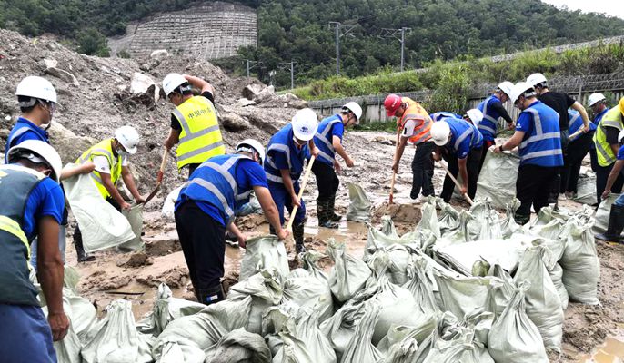 受强降雨影响,深圳海逸村项目基坑内出现大量积水,山体的泥石流汹涌而至,工地附近的山体排洪沟水量暴涨,严重影响到项目施工安全。项目负责人带领项目部全体员工及各协作管理人员30余人于当天上午赶往抢险防汛点,分三组展开各项抢险工作。两个小时的抢险工作,大家用肩抗、用车推,完成大功率水泵架设,并装沙袋500余个对护坡破损处进行填补,圆满完成项目抢险,解除当前施工燃眉之急,坚固防汛防洪主阵地。