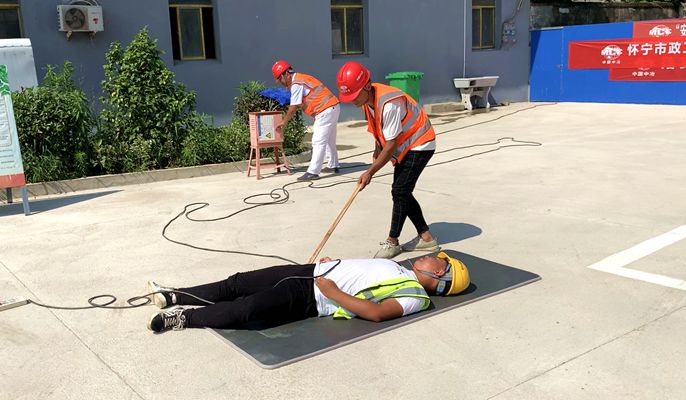 演练前,项目部制定了详细、周密的演练方案,并对各岗位人员进行了教育培训,做到分工明确、责任到人。下午3时整,演练正式拉开帷幕。针对演练预设的施工人员触电、高温中暑等场景,项目部迅速启动相应应急预案,应急小组迅速赶赴现场实施救援。各抢险应急小组配合默契、分工明确,模拟开展区域安全警戒、现场风险处置、受伤人员救护、担架移动、拨打120急电等场景。整个演练过程紧张有序、有条不紊,圆满地完成了各项演练任务。