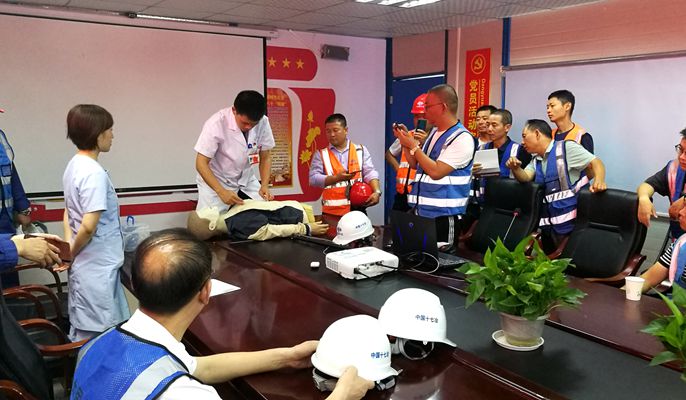 项目部特别邀请医院专家开展突发事故宣传讲座,讲解遇到突发事故如何正确的进行心肺复苏,第一时间抢救伤者。项目部安全员及分包单位安全员现场学习练习了如何正确进行心肺复苏。随后,在施工现场模拟突发事故应急演练情景,演练情景为一名作业人员在施工现场触电倒地,现场作业人员发现后进行心肺复苏,医院救援人员到场后迅速救助伤员。