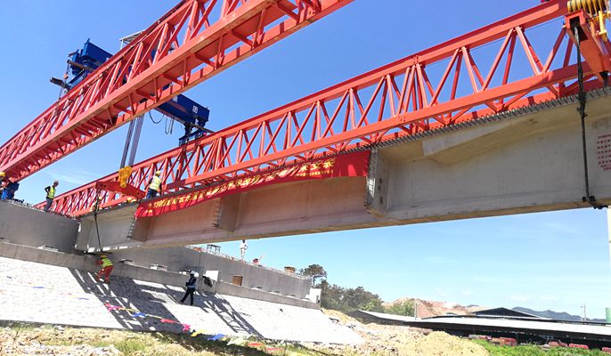 本次架设梁板为岩西跨线桥右幅25米1-4边跨中梁,长24.71米,宽1.7米,高1.7米,重58.5吨,采用180吨架桥机进行安装。为了确保首片梁成功架设,项目部精心组织,提前部署,科学编制梁板吊装与运输施工方案、架桥机安装与拆除方案,合理组织施工;严格过程管控,规范施工,对关键部位和关键工序全程监控,并安排专人做好交通疏导工作;强化安全考核,进行安全技术交底与安全培训,严格落实特种作业持证上岗制度,增强作业人员安全生产意识,杜绝安全隐患。