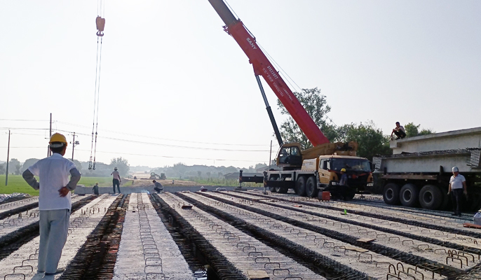 为保证施工进度满足形象进度要求,项目部积极克服汛期雨多、施工道路条件较差、T梁运输困难等诸多不利因素影响,抢抓有效工期,对施工任务进行分解细化,科学制定施工方案和保障措施,倒排工期,合理安排施工;严格落实岗前安全培训制度,对现场所有参建人员进行技术、安全交底,并派专人指挥,由专职安全员全程监督;强化过程管控,规范施工,严格把控吊装设备进场、吊装顺序、梁板运输等施工环节,保障工程建设质量,确保T梁架设顺利完成。