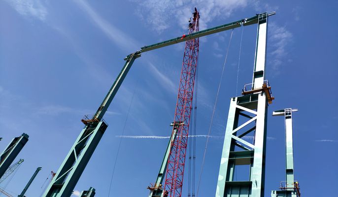 宝钢德盛新炼钢(一步)工程加料跨屋面梁首吊完成