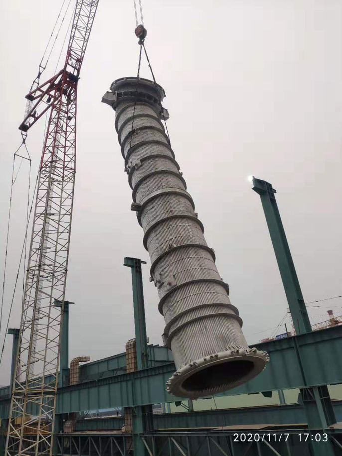 11月8日,中国十七冶集团冶金工程技术分公司承建的宝钢德盛新炼钢(一步)工程1#AOD炉斜烟道先后完成吊装,至此四台转炉的四段斜烟道全部吊装完成。