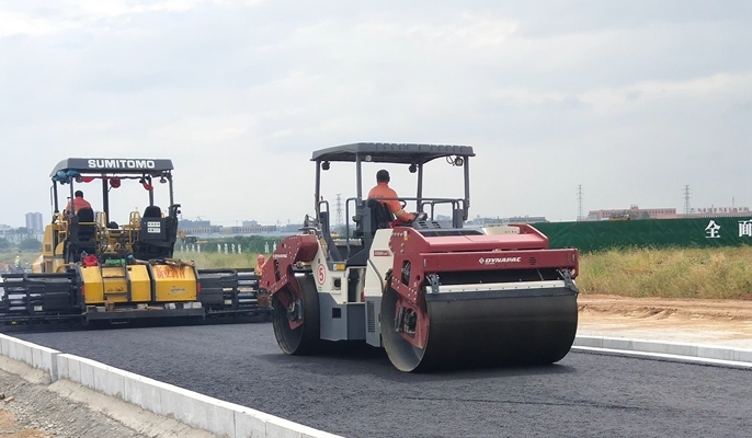 为确保施工顺利进展,项目部狠抓进度控制和质量控制,积极克服时间紧、任务重、梅雨天气等诸多不利因素,按照总体施工方案制定完备的月计划、周计划,在确保质量、安全的前提下抢抓工程进度,力求创造精品工程。经过一天一夜的奋战,顺利完成第一层沥青摊铺。为接下来的第二层沥青摊铺,奠定了良好的工作面基础,同时也为后续的施工积累了宝贵的技术经验。