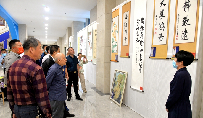 9月23日,梁山县“中国农民丰收节”书画展在中国十七冶集团山东分公司承建的梁山文化中心工人文化宫举办。