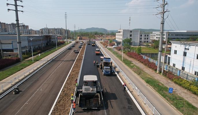 4月11日,中国十七冶集团路桥工程技术分公司承建的含山经济开发区承接长三角产业转移基地建设一期项目东区路网天鼓路旧路改造工程开始沥青下面层摊铺。