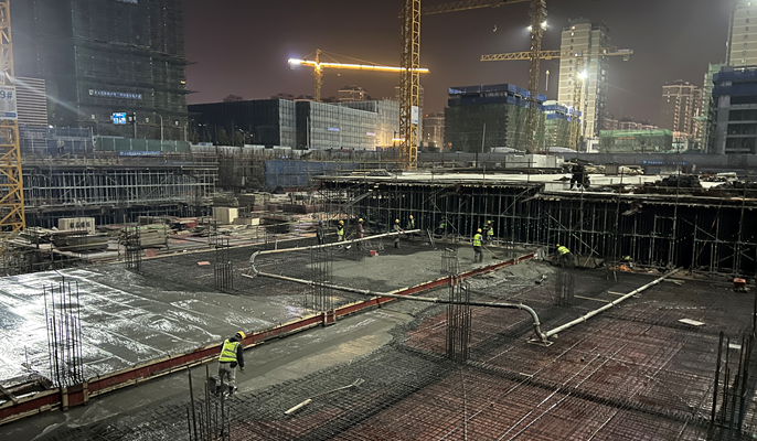 3月9日,经过3小时的连续作业,中国十七冶城建分公司承建的合肥五里片区A组团二期复建点G地块项目6#地库负二层顶板砼浇筑完成。