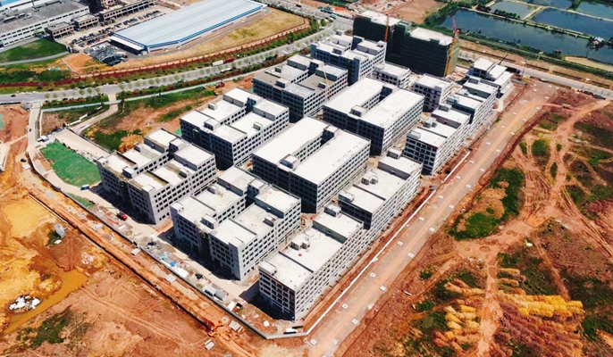 为确保“时间过半、任务过半”目标的实现,项目团队多措并举保工期、强安全、提质量。合理制定并优化工期计划,通过召开推进会、组织考核等监督机制确保工期不延误;加强安全教育,落实防护措施,加强特种设备、消防设施的隐患排查,通过制定应急预案、事故处理机制确保安全生产零隐患、零事故;严格按照设计要求、技术标准开展施工,定期开展质量检测评估,强化全过程质量监管。截至目前,项目7栋5层厂房、2栋4层独栋及4栋5层厂房主体结构施工已完成,全面转入装饰装修阶段。