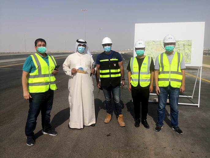 王世德(右二)在科威特6.5环路项目接受主流媒体采访