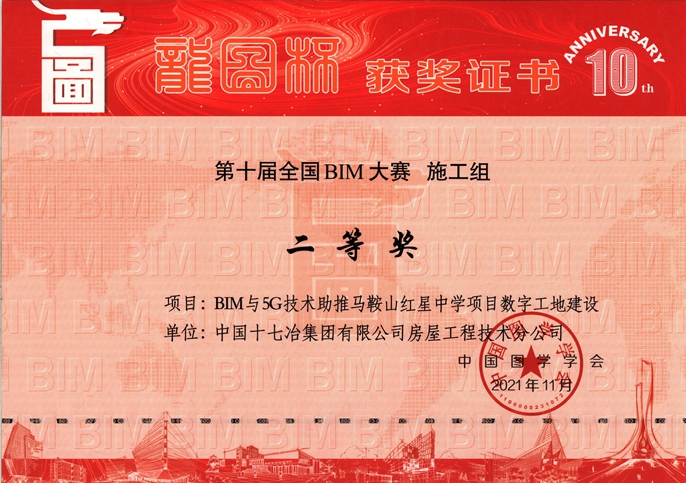 12月28日,中国十七冶集团收到中国图学学会发布第十届“龙图杯”全国BIM(建筑信息模型)大赛组委会颁发的奖状,公司承建的兰州奥体中心一场三馆项目获得一等奖、红星中学整体搬迁项目和滁州奥体中心项目获得二等奖、宝钢湛江项目获优秀奖。