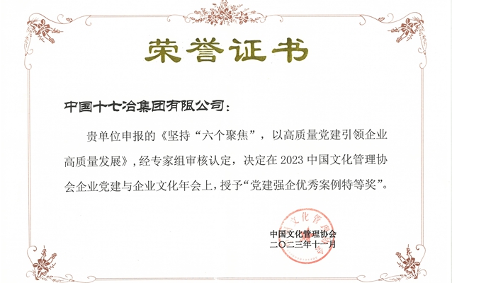 中国十七冶荣获2023年度党建与企业文化建设多项荣誉及成果