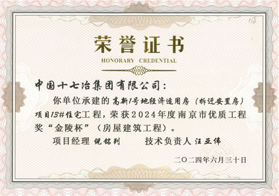 7月4日,南京建筑业协会公布了2024年南京市优质工程“金陵杯”项目名单,江苏分公司承建的浦口区高新1号地经济适用房项目13#楼荣登榜单。