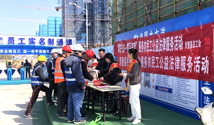 3月22日,灵璧县总工会联合灵璧县住建局工会到十七冶承建的灵璧县金色名郡项目部现场,开展“尊法守法·携手筑梦”服务农民工公益法律服务活动。