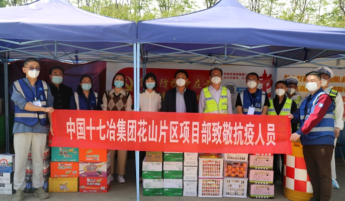 为助力政府疫情防控,4月9日,中国十七冶集团花山片区项目开展“一线防疫慰问”活动,为守在马鞍山高速北的“大白”们送上了泡面、矿泉水、牛奶、水果等生活物资。