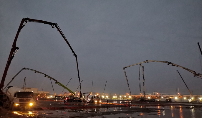 持续工作到深夜,此时休息也是大问题。大干第一天,很多后勤物资还不能满足现场需要。人多房少,大家有的就到大巴车上“凑合”一觉,醒来再轮班休息,确保施工不停歇。经过全体人员的不懈努力,十七冶仅用46个小时,就完成临港方舱的全部地坪浇筑任务,顺利打赢了工程建设的第一战,为后面的方舱安装赢得了时间。