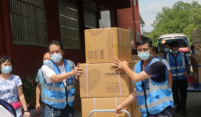 面对疫情,项目部积极配合医务工作者,提供场所和物资,快速组建核酸检测点,为周边居民和工人提供便民服务。酷暑炎热,夜幕降临,项目部志愿者们实行24小时工作制,协助核酸检测人员做好秩序维护、组织保障、人员登记等工作,全力构筑疫情防控的志愿者红色堡垒。为保障抗疫物资配送,项目部志愿者主动联系怀宁县政府提供服务,众人来到中心药房,搬送物资,协助工作人员点数、清运、配送,大家凝心聚力,奋战在抗疫一线。