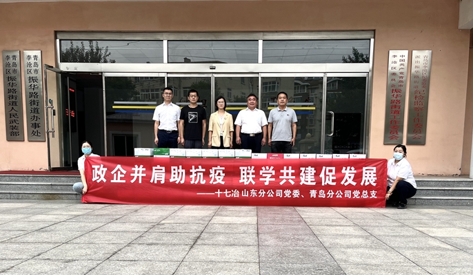 8月25日,十七冶山东分公司党委、青岛分公司党总支到项目驻地青岛市李沧区振华路街道开展党建联学共建活动,并慰问街道防疫人员。振华路街道党工委书记任志敏、山东分公司党委书记邢飞等参加。