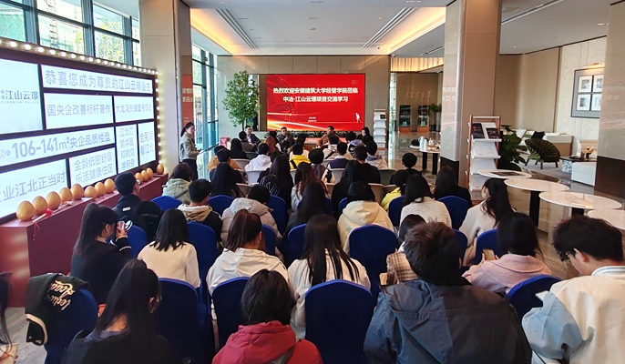 活动当天,在项目公司的安排及引领下,师生们参观了营销中心、样板间,观看了中国十七冶、中冶·江山云璟项目宣传片,详细了解了公司企业文化及项目品牌区位、周边配套等。座谈会上,师生们结合对大龙湾片区发展背景、营商环境、商圈业态、商业竞争等内容的前期调研,向项目公司营销、设计、工程等专业管理人员请教学习,深入了解了项目前期策划、设计理念、工程实践、营销策略等知识,不仅巩固了所学的理论知识,也加深了对房地产业态的了解。