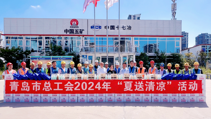 8月13日,青岛市总工会到中国十七冶青岛国际院士港项目开展“夏送清凉”慰问活动山东建投纪委书记、工会主席崔逊斌等参加活动。
