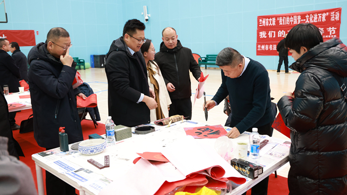 此次活动吸引了近千名兰州市民参加,大家齐聚一堂欢声笑语,沉浸在中华传统文化的独特魅力之中,也充分展现了兰州奥体中心作为城市体育文化中心的强大凝聚力和非凡吸引力。甘肃省书协副主席、兰州市书协主席汪志刚市文联的5名书法家,以精湛绝伦的书法技艺,免费为市民们送上了一份份饱含心意的新春祝福。每一幅春联都承载着大家对生活的殷切向往对新年的美好期许,每一个 “福” 字都寄托着兰州奥体中心对市民们幸福安康、吉祥如意的深深祝愿。